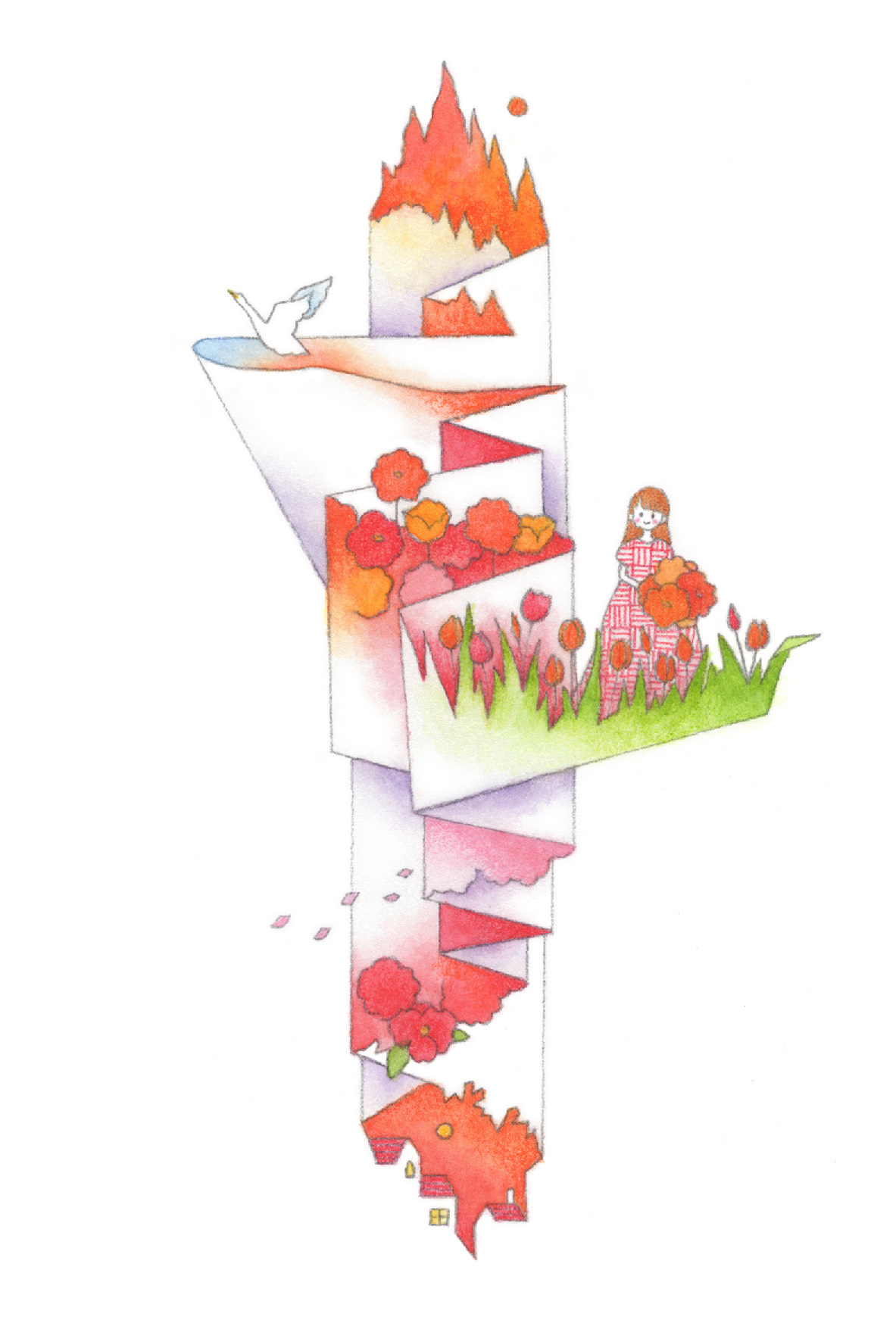 technique: 透明水彩絵の具、色鉛筆